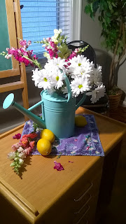 | All surfaces (and the floor) was filled with fresh flowers and lovely displays |